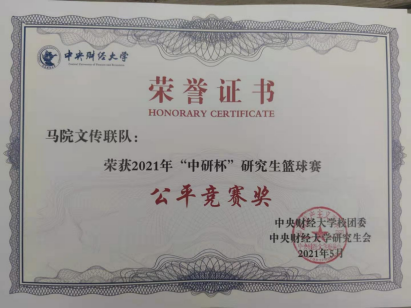 4月14日-4月24日,马克思主义院派出自建院以来的首支男子篮球联队参加公司“中研杯”男子篮球赛,与信息公司、保险公司、经济公司和国际经济与贸易公司展开了四场精彩纷呈的小组赛事。马院文传联队荣获了2021年“中研杯”研究生篮球赛公平竞赛奖荣誉;男篮队员牛子谦荣获2021年“中研杯”研究生篮球赛优秀裁判员称号。