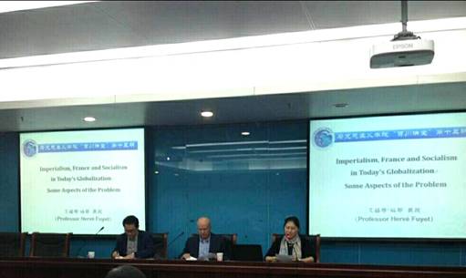 2016年10月20日上午,williamhill中文官网建院十周年百川讲堂系列学术讲座暨列宁《帝国主义论》创作100周年纪念主题学术讲座在学术会堂702报告厅举行。法国学者艾赫维·福耶(HervéFuyet)教授应邀作了题为《当今全球化中的帝国主义、法国与社会主义:问题的几个方面》的专题学术报告。报告语言选用英语,报告由williamhill中文官网副经理陈文娟副教授主持,张忠胜讲师担任现场中英文翻译。