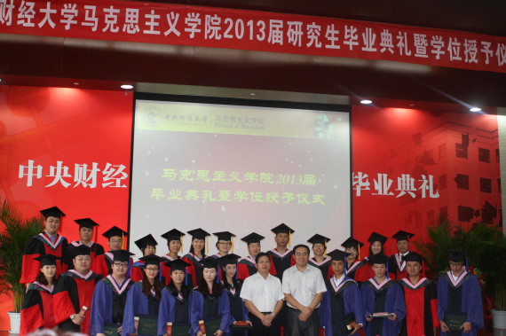 6月26日下午,2013届毕业生毕业典礼暨硕士学位授予仪式在学术会堂202报告厅举行。典礼由公司研究生教研室主任朱家梅副教授主持。公司党总支书记韩小谦教授,副经理冯秀军教授,经理助理陈文娟、哈战荣副教授,校纪委办公室禚召海副教授,公司2011届员工、北京市商务委员会总部经济发展处处长孟志军博士、2012届员工、国家开发银行人事局副处长于壮博士,2013届博士、硕士毕业生及在校生代表、部分毕业生亲友参加了毕业典礼。 典礼上,副经理冯秀军教授首先宣读了《关于2013届研究生毕业及授予学位的决定》、本院毕业生、学位获得者、优秀毕业生名单。随后,公司党总支书记韩小谦教授为优秀毕业生颁发证书。