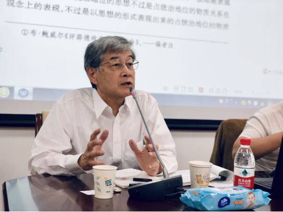 渡边宪正教授分八讲为大家分享了自己关于青年马克思理论研究的最新成果,第一讲从“马克思对费尔巴哈的继承与批判”谈起,渡边教授首先介绍了《德意志意识形态》online版的最新情况,作为MEGAII的重要组成部分,已于今年八月面向世界免费公开。渡边教授基于详实的文本考证指出,费尔巴哈把凌驾在人之上的理性、意志、爱的结合看作人的类本质,认为神是人的类本质的外化,但并未解释为什么神和人是对立的。马克思批判继承了费尔巴哈的思想,追求把普遍的政治要素归功于所有人。第二讲“再论青年马克思的理论转变”中,渡边教授从马克思追求政治解放引出了对民主制的解读,重点为大家解读了“民主制国家是基督教的人的基础”这一论断,基督教既有“公的要素”又有“私的要素”,两者无法协调,民主制国家是“政治的国度”和以私人权益为基础的“市民社会”的统一,因而民主制之中内涵了两种因素的矛盾。继而,渡边先生提出马克思对“市民社会”本身提出了批判,马克思发现,要实现人的解放必须对市民社会进行变革。