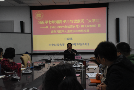 任晓伟教授主要从以下三个方面展开讲解:第一,从梁家河的概况、知青、习仲勋的经历、文革中的高考制度几个方面来介绍青年习近平知青岁月的历史背景。第二,从苦、学、做、情四个方面介绍了青年习近平知青生活的历史特点。第三,介绍了“大学问”的内涵与习近平新时代中国特色社会主义思想的关系。任晓伟教授指出梁家河“大学问”不是专门性的技术或具体知识意义的学问,而是特指世界观方法论意义上的知识。梁家河“大学问”核心是实践的观念、要义是群众的观念、精髓是党的观念。习近平心中的梁家河是中国千千万万的村庄,亿万百姓的小康梦想。最后,任晓伟教授借用《知青岁月》中的一段作为结语:“我们这个国家,正是因为有一批近平这样的人——未必都是领导干部,可能是工人、农民教师、医生,无论是不平凡的人,还是平凡的人,他们都有一个共同点,就是热爱这个国家愿意穷尽毕生为他奋斗。所以中国才会像今天这样,有这么快的发展和这么大的进步, 而且有这么美好的未来。”