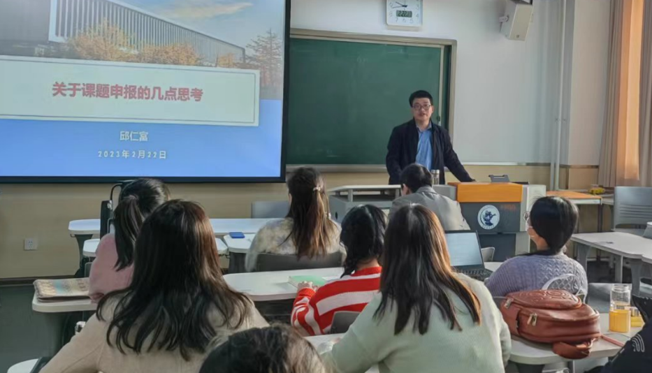 邱仁富教授结合自身申报国社科的经历和经验与大家进行了交流,主要讲了五个方面的问题:一是科研项目与育人的关系,二是科研项目的主要类型,三是国社科的基本情况及在申报中应注意的问题,四是历年国社科选题方向分析,五是申报国社科如何进行选题。辅导报告结束后,邱仁富教授与老师们就课题申报进行了交流,回答了老师们的提问和疑惑。