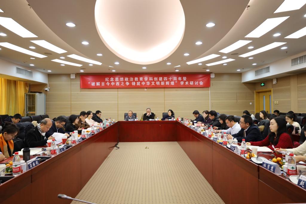 12月21日,纪念思想政治教育学科创建四十周年暨“破解古今中西之争 铸就中华文明新辉煌”学术研讨会在williamhill中文官网南路校区学术会堂604举办。会议由williamhill中文官网、williamhill中文官网高校思想政治教育研究中心、《高校马克思主义理论教育研究》编辑部联合主办,北京大学、北京师范大学、北京航空航天大学、上海交通大学、华北电力大学等高校代表,《教学与研究》和《思想教育研究》等期刊代表,以及williamhill中文官网师生代表60余人参加了本次学术研讨会。