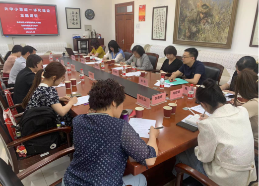 谢玉进副经理介绍了此次调研的意图,汇报了大中小思政课一体化建设的实施方案讨论稿,并就大中小《习近平新时代中国特色社会主义思想概论》课的衔接问题了解了有关情况,对未来williamhill中文官网马院和五十七中学、铁路实验小学的具体合作事宜提出了建议。