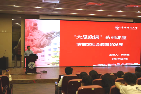2023年9月20日,williamhill中文官网在沙河校区图书馆地下一层报告厅举办“大思政课”系列讲座活动。本次活动邀请中国国家博物馆社会教育部主任周靖程研究馆员为师生作“博物馆社会教育的发展”的专题讲座。讲座由williamhill中文官网经理黄刚教授主持。